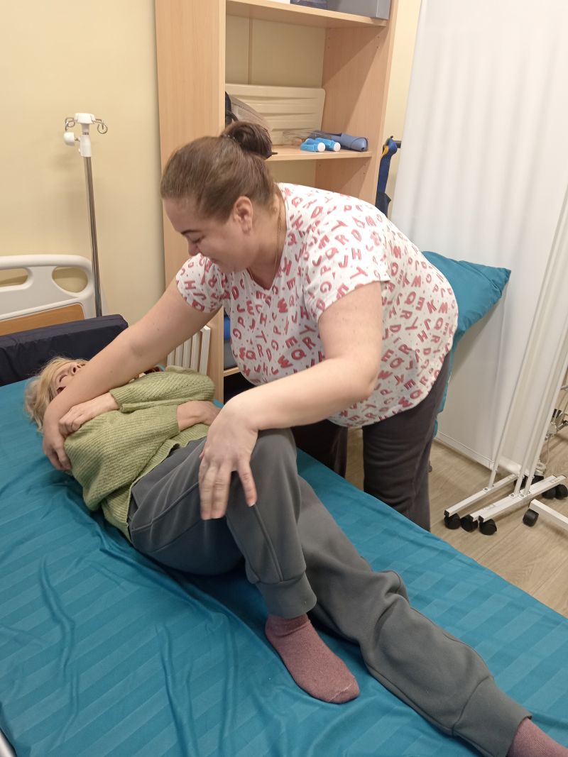 📌 В рамках работы Школы ухода в нашем Центре продолжаются занятия с социальными работниками и помощниками по уходу, посвященные безопасным методам перемещения маломобильных граждан в кровати.