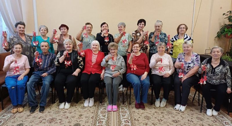 💥 Пенсионеры увлечённо трудились над всеми этапами работы. Это и окрашивание гуашью конусов колокольчиков, и изготовление красных бантиков, и декор колокольчиков золотыми пайетками.