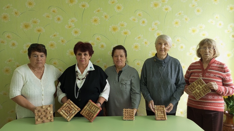 На занятиях по трудотерапии обслуживаемые отделения дневного пребывания ГБУ "КЦСОН Краснобаковского муниципального округа" под руководством инструктора Науменко Т.В. изготовили подставку под горячее из бутылочных пробок.