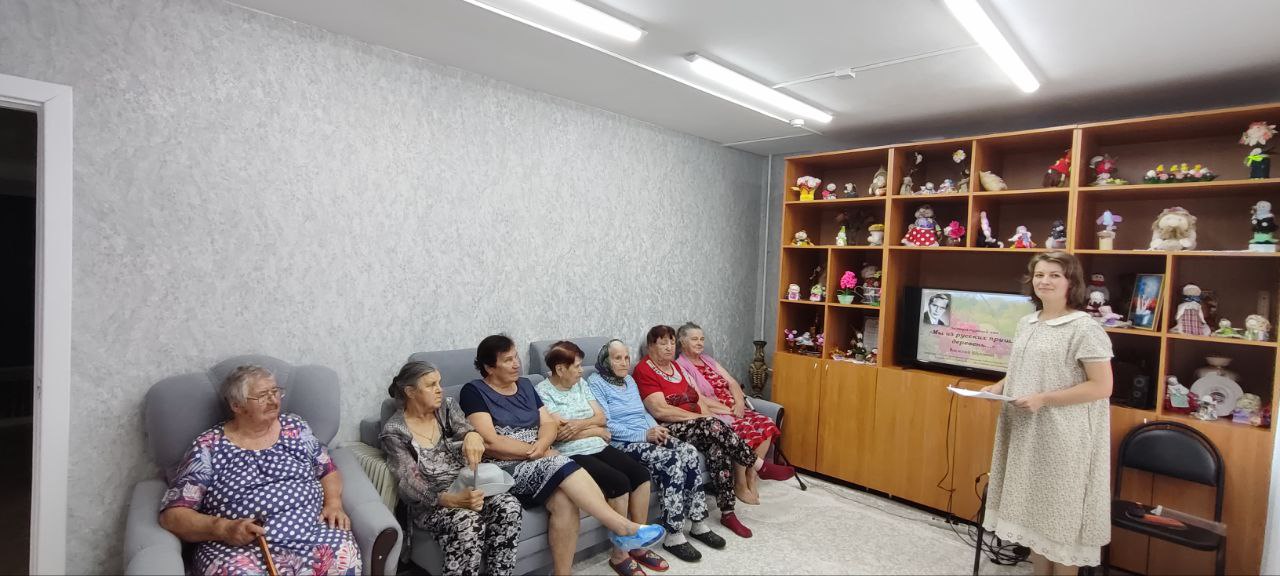 Для жителей отделения "Специализированный жилой дом для граждан пожилого возраста и инвалидов" ГБУ "КЦСОН Краснобаковского муниципального округа" состоялась литературная гостиная по творчеству В.Шукшина «Мы из русских пришли деревень», которую провела сотрудник библиотеки им. Н.Г. Тумакова Нелюбина И.Н.. На мероприятии присутствующие познакомились с жизнью и творческим наследием Василия Макаровича Шукшина, его рассказами и фильмами, в которых он поднимал темы русской деревни, русской души и русского характера. Его рассказы и повести стали классикой отечественной литературы. Не каждый писатель способен так открыто, по-доброму рассказать о взаимоотношениях простых людей. В рамках мероприятия, обсуждались его произведения, показывали фрагменты фильмов, а также провели викторину по его рассказам. Его произведения затрагивают такие темы, как нравственные ценности, правда и ложь, столкновение городской и деревенской жизни.