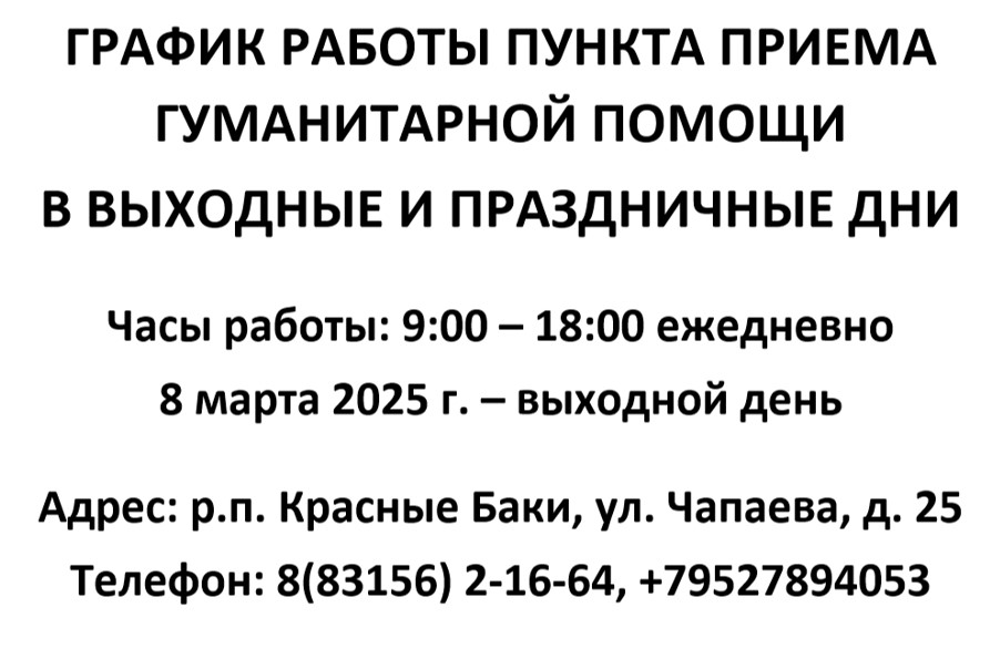 График работы пункта приема гуманитарной помощи в выходные и праздничные дни