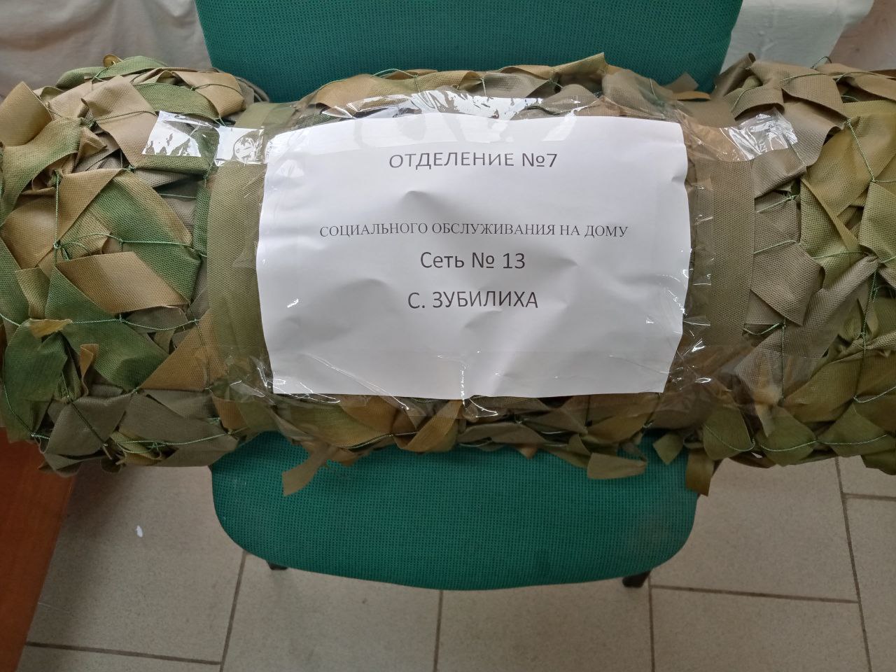 В с. Зубилиха социальные работники ГБУ "КЦСОН Краснобаковского муниципального округа" изготовили 13-ю по счету маскировочную сеть для отправки в зону действия СВО