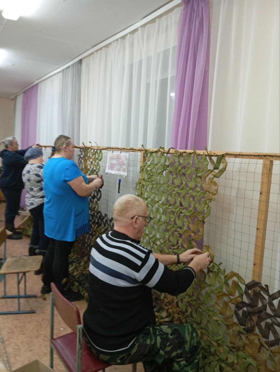 В с. Зубилиха социальные работники ГБУ "КЦСОН Краснобаковского муниципального округа" изготовили двенадцатую маскировочную сеть для СВО