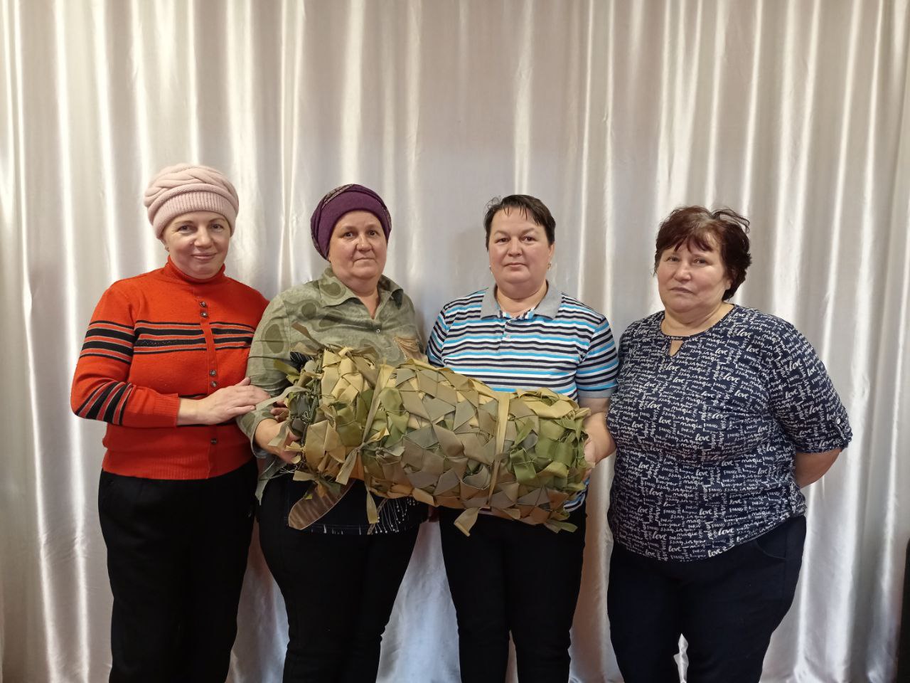 В с. Кириллово социальные работники ГБУ "КЦСОН Краснобаковского муниципального округа" подготовили еще одну маскировочную сеть для отправки в зону действия СВО
