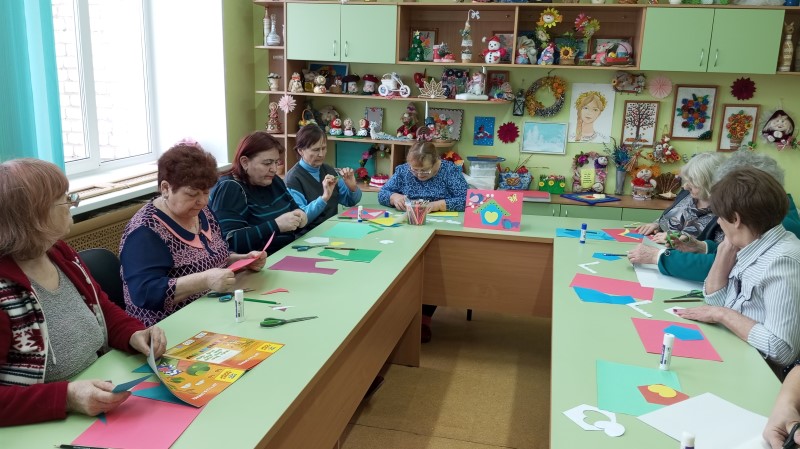 Занятия по аппликации проводятся для выявления и развития у пожилых людей творческих способностей, восстановления мелкой моторики пальцев рук, создания условий для общения и досуга.