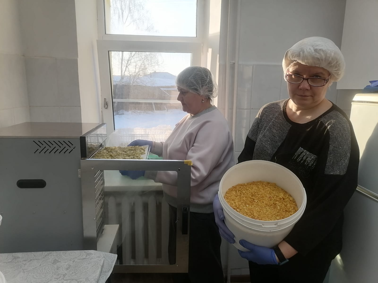 Сотрудники ГБУ «КЦСОН Краснобаковского муниципального округа» совместно с жителями отделения «Специализированный жилом дом для граждан пожилого возраста и инвалидов» продолжают сушить овощи для изготовления сухих супов участникам СВО. Это-соленые огурцы, свежая капуста, картошка, морковь, свёкла. Сухие супы – это не просто еда, это напоминание о доме.