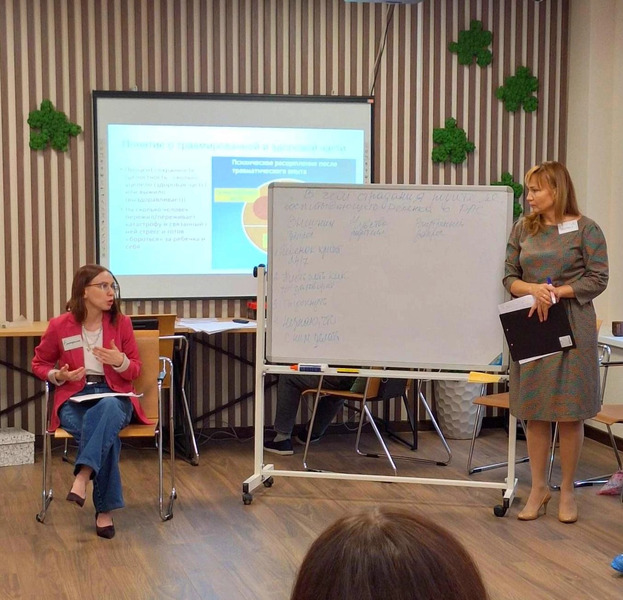 26 ноября в Центре социального развития Нижегородской области психолог Алимова С.В. приняла участие в областном практико-ориентированном семинаре на тему: «Специфика оказания психологической поддержки взрослым, сталкивающимся с проблемами воспитания детей с расстройствами аутистического спектра (РАС)». Семинар был проведен практикующим психологом, гештальт-терапевтом Екатериной Дерябиной и практикующим психологом, семейным терапевтом Ларисой Горбаченко. В ходе семинара участники, вместе с ведущими, рассмотрели типичный портрет родителя, воспитывающего ребенка с РАС, и проанализировали: