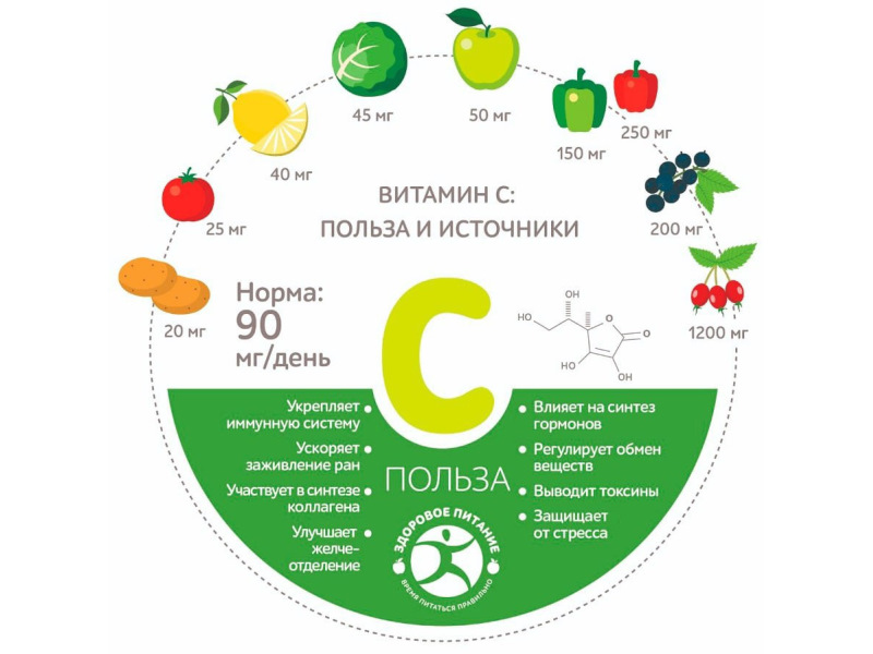 Интересно, что витамин С, в отличие от многих других полезных веществ, не вырабатывается и не накапливается в организме человека.