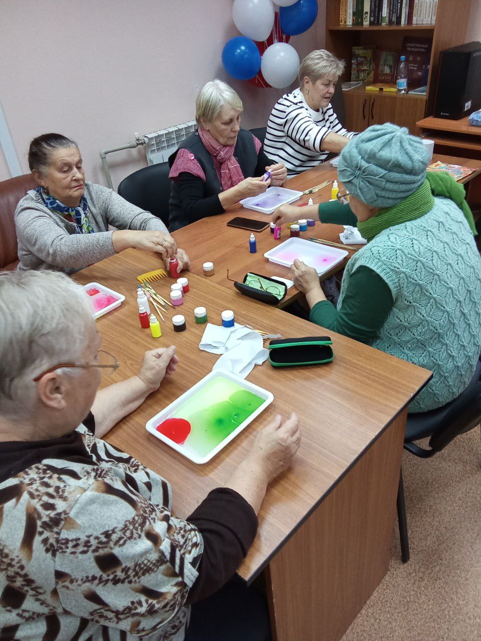 Вчера на базе Центра общения старшего поколения специалист нашего Центра провел мастер-класс по рисованию в технике Эбру.